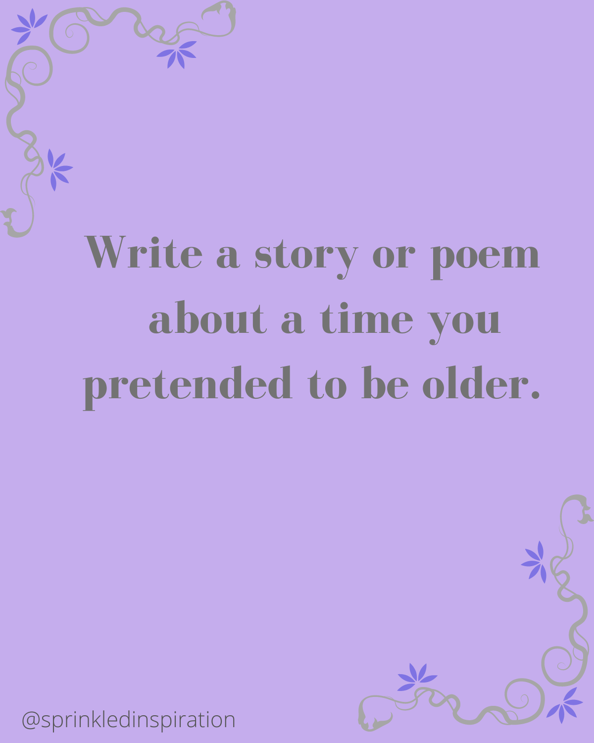 Daily prompt for September 5, 2022Heather L HuffmanSep 05, 2022SharePhoto caption: Write a story or poem about a time you pretended to be older.Sprinkled Inspiration Newsletter is a reader-supported publication. To receive new posts and support my work, consider becoming a free or paid subscriber.SubscribePreviousNext